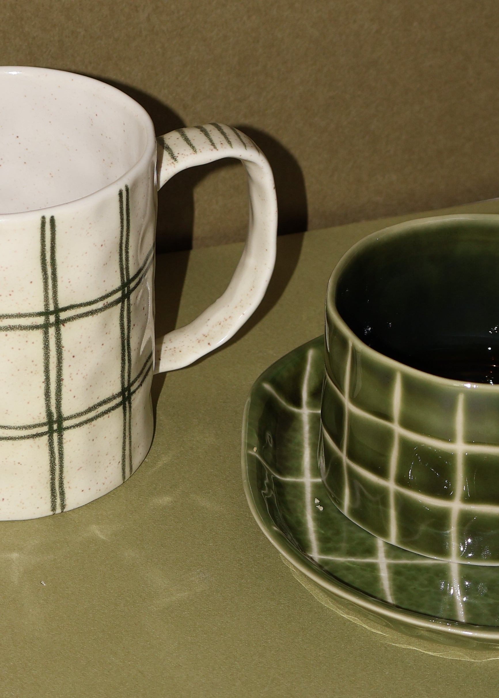 Ceria Haus Raya Tea Duo Bundle - Matcha Lines 300ml Mug & Matcha Maze 180ml Mug/ Saucer Set